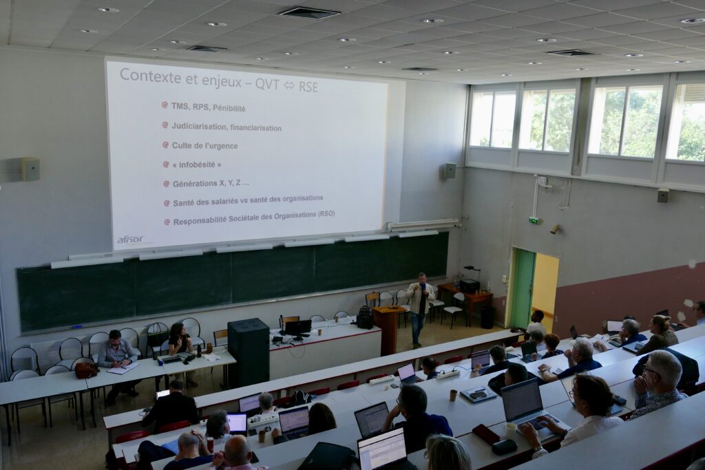 Comme chaque année, au mois de mai, les directrices et directeurs des 108 IUT de France métropolitaine et d’outre-mer se sont réunis dans le cadre de l’Assemblée Générale annuelle de l’Assemblée des Directeurs d’IUT (ADIUT). Ce rendez-vous permet de construire ensemble une véritable politique de réseau, portée par le conseil de l’ADIUT, et de partager et mutualiser les bonnes pratiques. L’AG est aussi l’occasion de réfléchir à une thématique d’actualité : des conférences et des tables-rondes ont organisées autour des enjeux de développement durable et de responsabilité sociétale.
