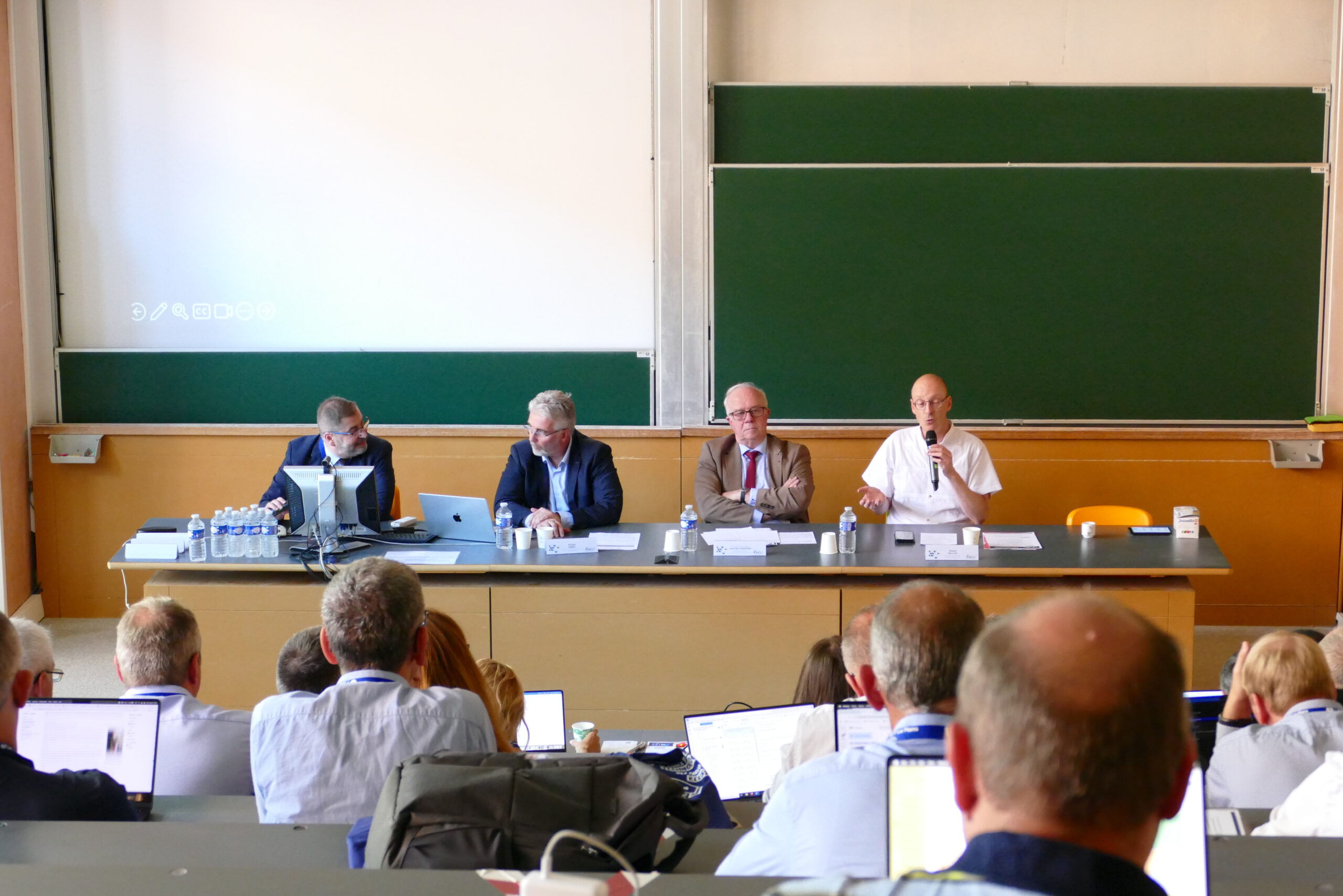 Après une visite de la vieille ville du Mans et une soirée conviviale, la deuxième journée s’est ouverte par une conférence sur « La gestion des risques dans un contexte de transition écologique », avec Anis Matoussi, professeur des universités en mathématiques, directeur de l’Institut du Risque et de l’Assurance (Université du Mans), et Thibault Monnet, responsable modélisation des catastrophes et actuaire.