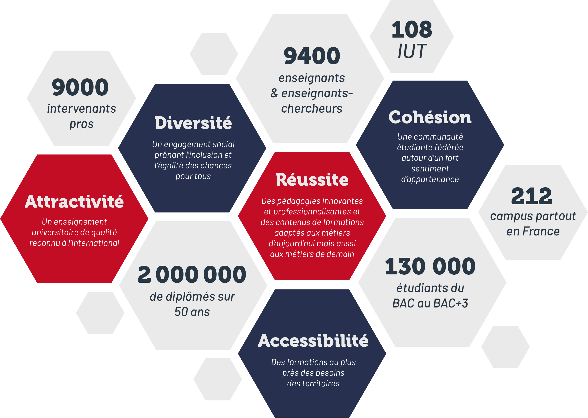 Les IUT accordent une part significative de leur programme aux enseignements assurés par des experts professionnels. L’efficacité d’un enseignement par la technologie pour permettre la réussite de leurs publics, bacheliers généraux et technologiques, n’est plus à démontrer. Les IUT intègrent ainsi naturellement travaux pratiques, projets tutorés et stages dans leurs cursus. Il s’agit de développer une pédagogie active qui leur permet de s’adapter aux changements économiques et sociétaux.