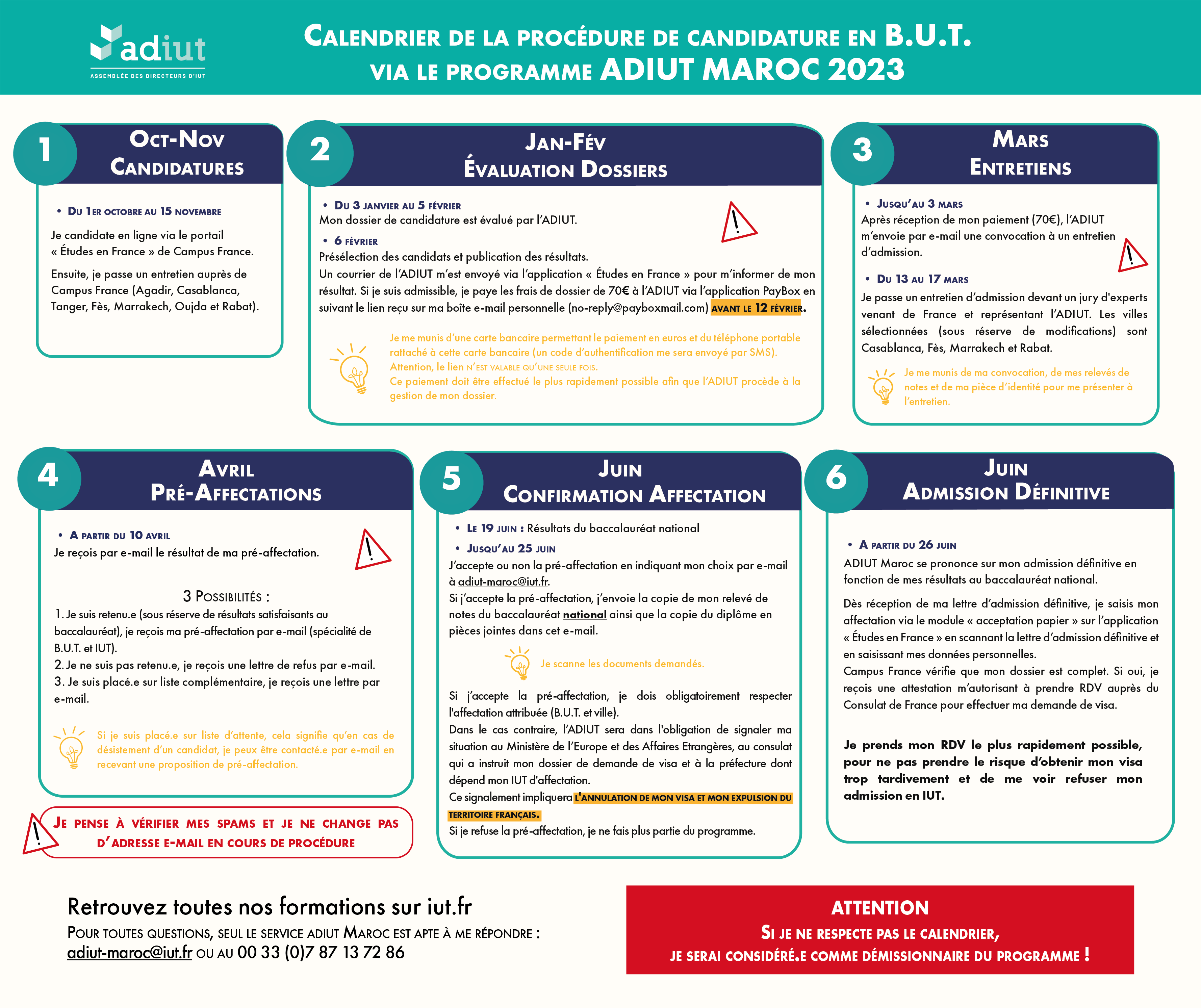 Pour tout renseignement complémentaire, vous pouvez écrire à : adiut-maroc@iut.fr